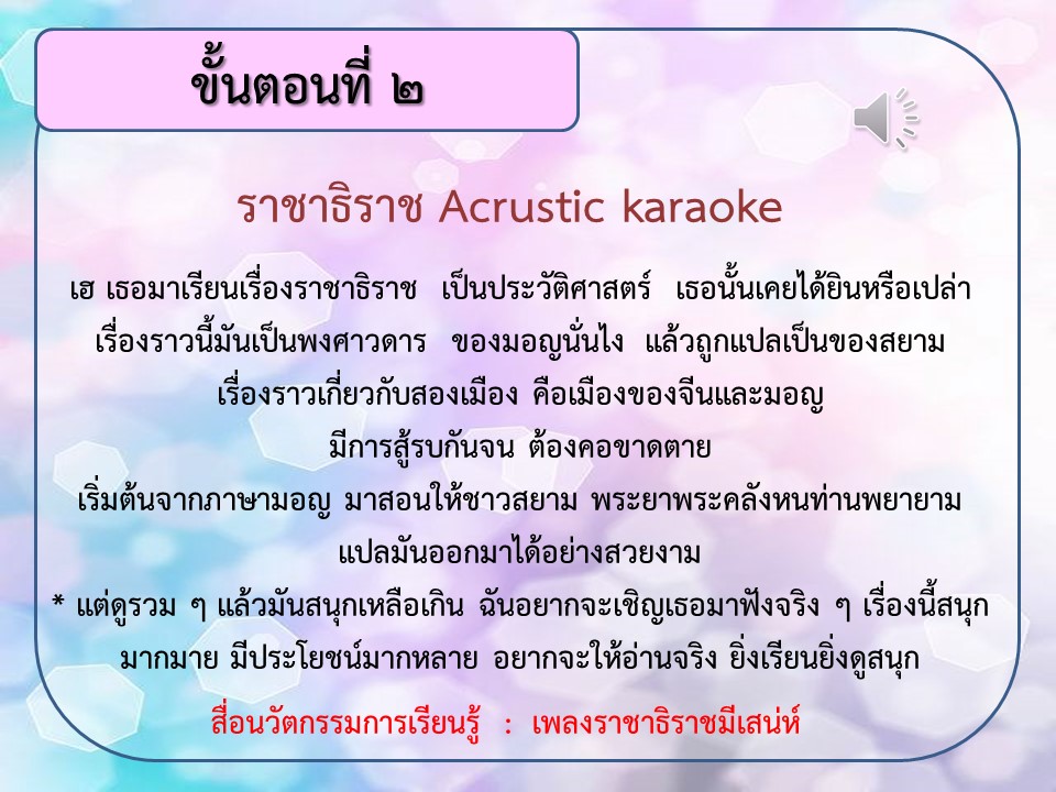• สาระการฟัง การดู และการพูด
