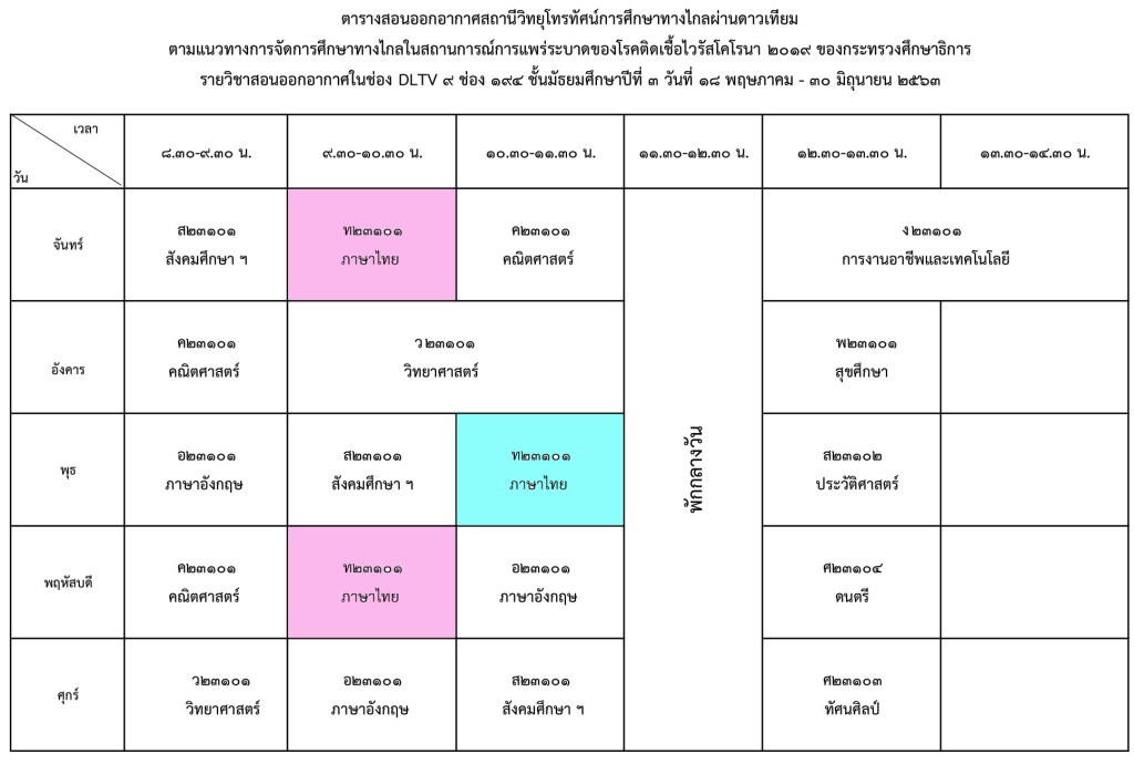 ตารางออกอากาศระดับชั้นมัธยมศึกษาปีที่ 3